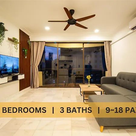 设有私人游泳池的Downtown Condo Kl City - 18 Pax 吉隆坡在武吉免登附近。 该公寓共有3间卧室,3间浴室和小厨房。